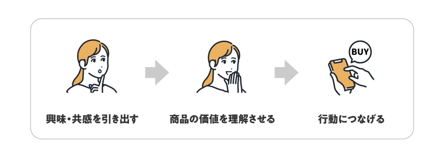 3. 最終的に行動(クリック・購入・問い合わせなど)につなげる。