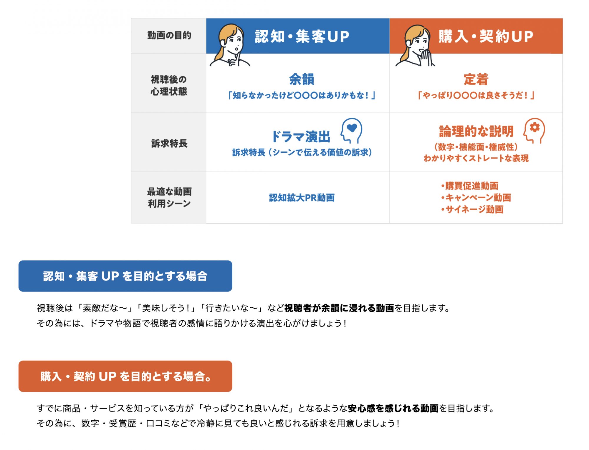 プロモーション動画は、見てもらう目的によって構成が変わります。