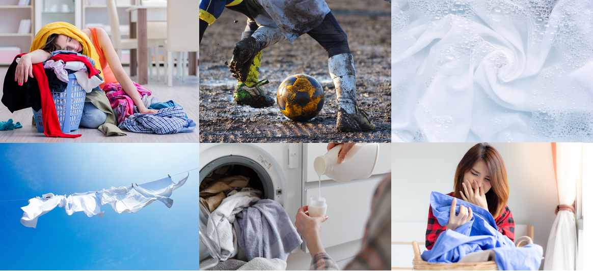 30-50歳代の女性、既婚子あり、日中は仕事をしている、子供が部活動をしていて、週末はその練習試合に同行することが多い、家事は嫌いではないが、洗濯物の量が多くて嫌になる、特に子供の部活の服の汚れが取れなくて困っている